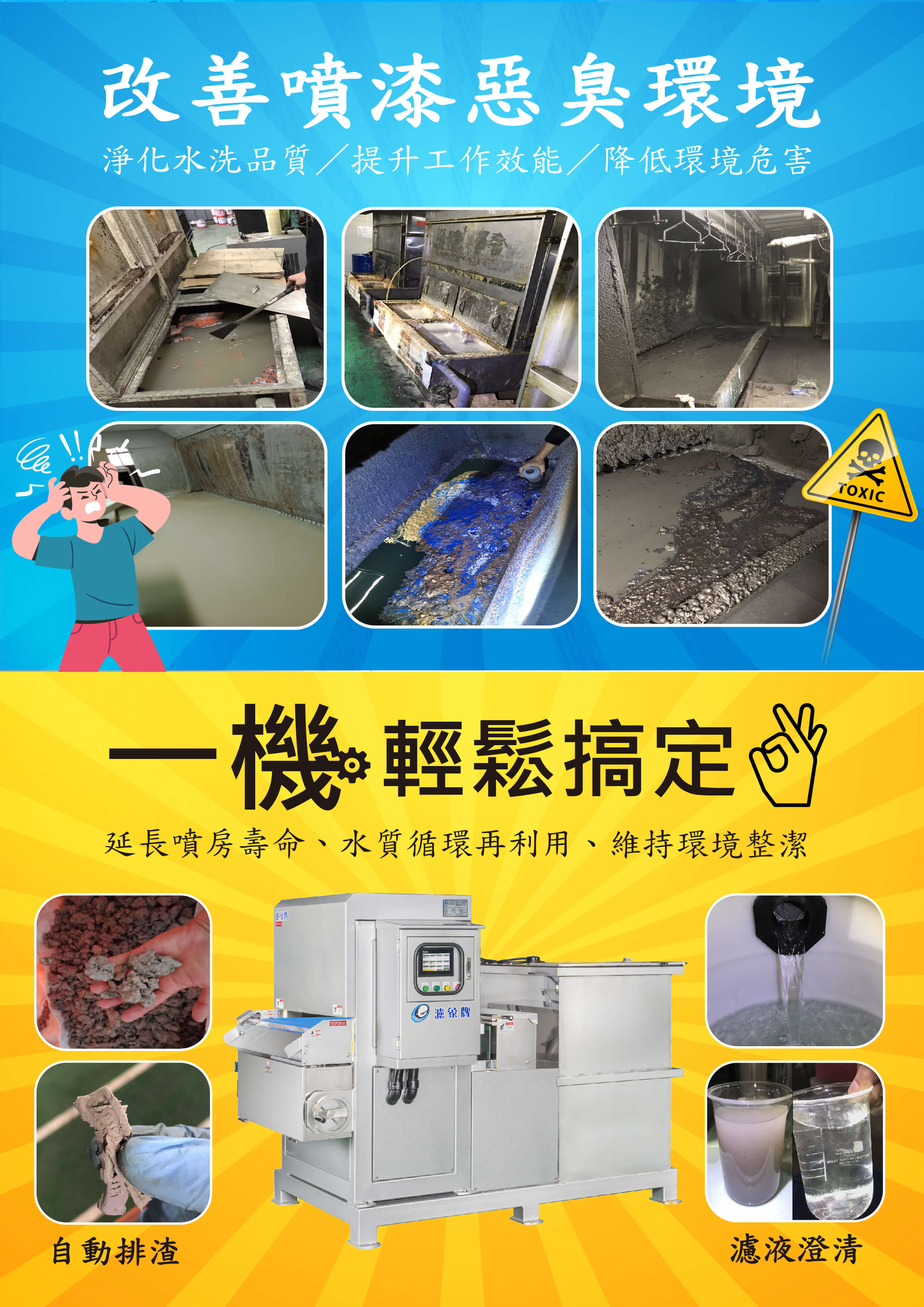 漆渣處理機|水簾幕、水洗式噴漆作業廢水設計專用
