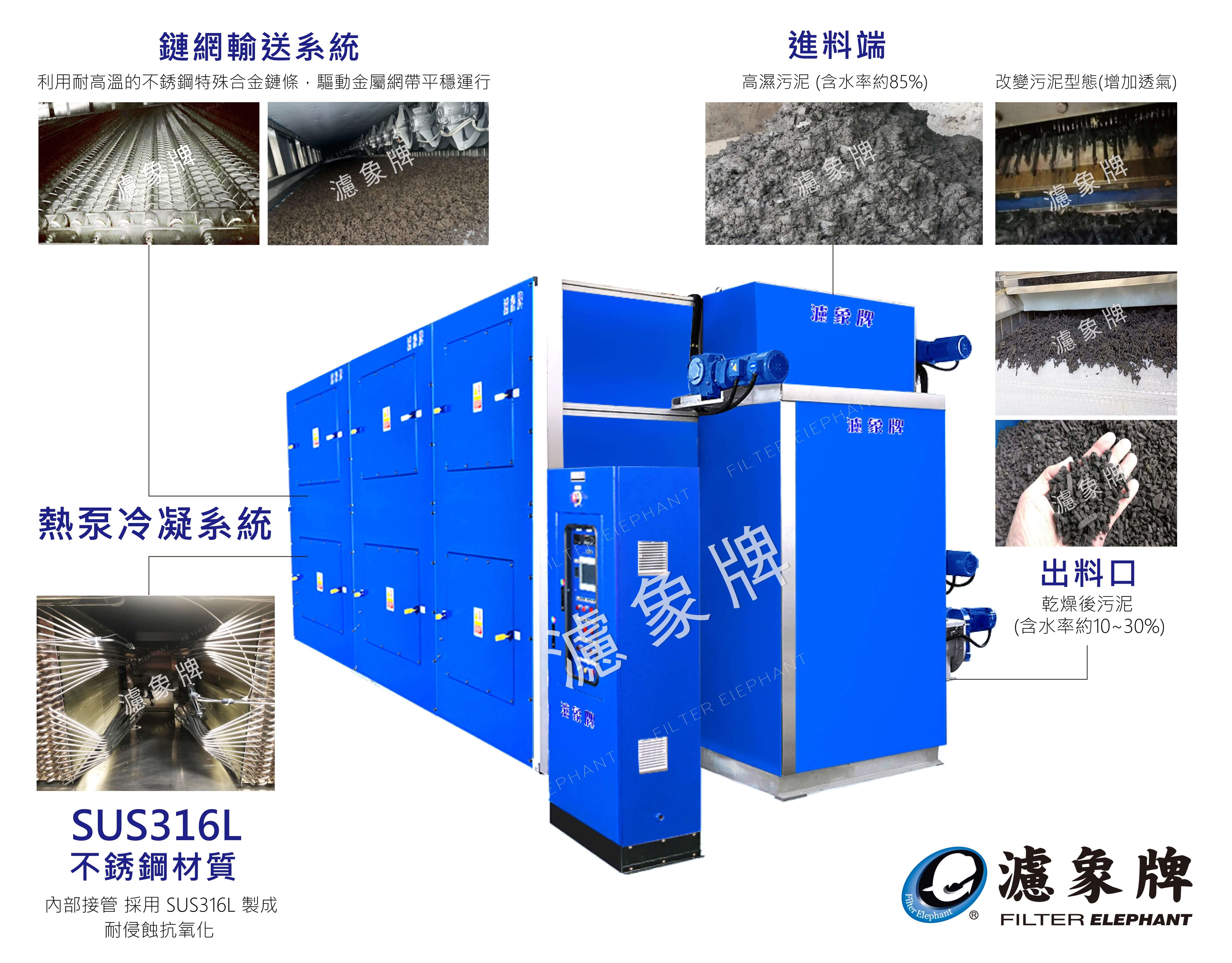 - 可搭配疊螺機污泥脫水設備 形成一體化處理系統 ( 客製乾燥流程設計 )