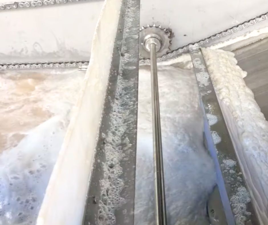 浮渣可刮除後進入濃縮槽或直接銜接污泥脫水(例如壓濾機)。 透過前段浮除,後段污泥量通常更可控、含水率更容易下降。