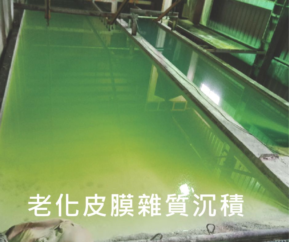 | SS懸浮固體去除 | 過濾皮膜結晶碎屑、鐵粉、鋅粉,維持藥液潔淨 |