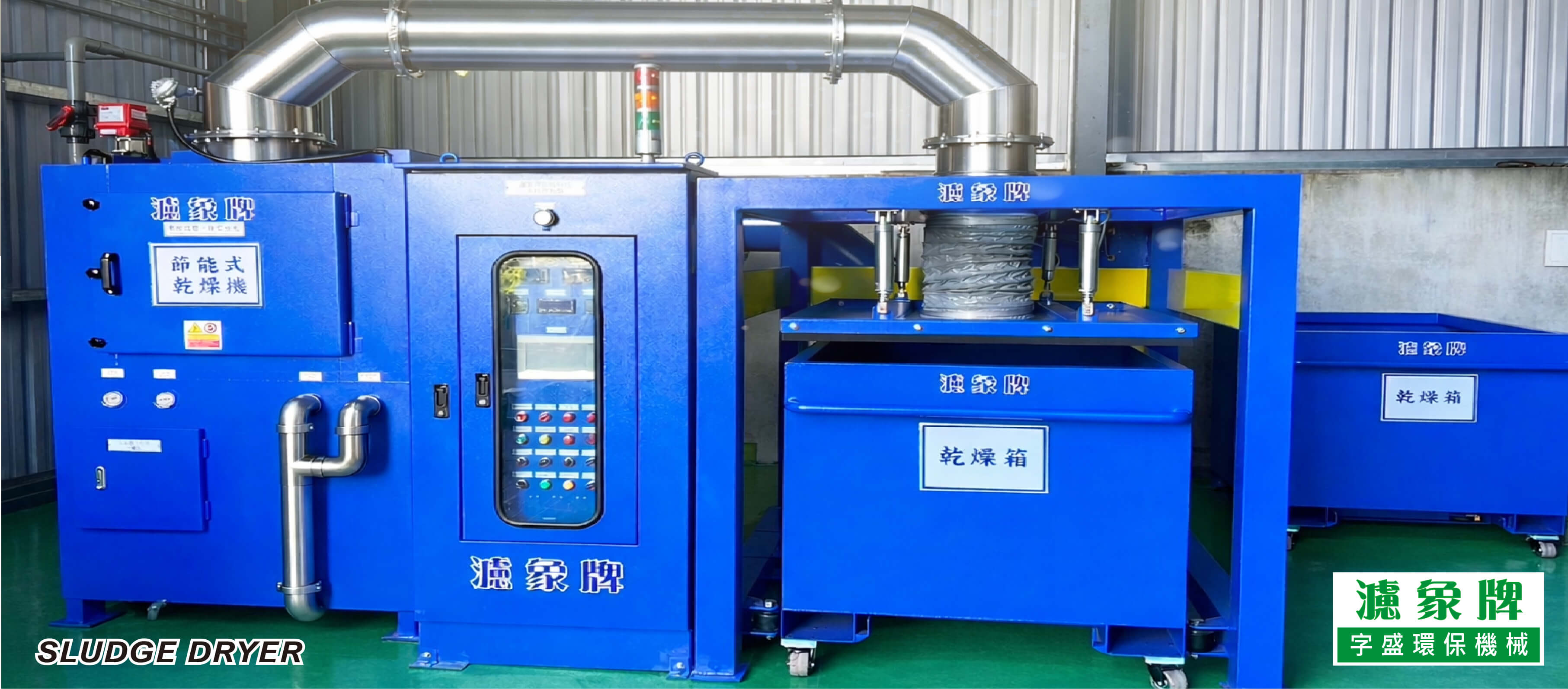 大型-節能乾燥機 處理量較大 濾象牌乾燥機採用熱泵內循環低溫乾燥污泥, 利用冷熱交替循環方式,達到節電 ...